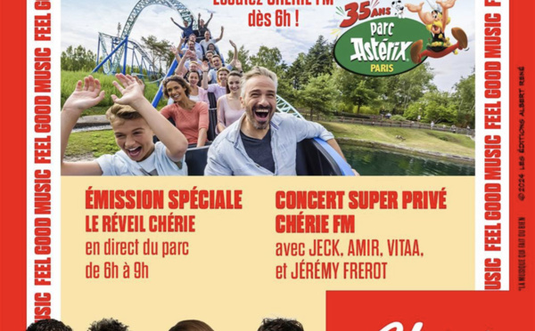 Le 24 mai prochain, Chérie FM s'installera toute la journée au cœur du Parc Astérix et invite ses auditeurs à un "concert super privé". Sur la scène, Amir, Vitaa, Jeck et Jérémy Frérot...