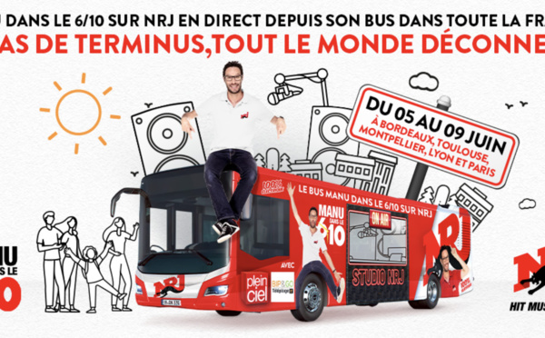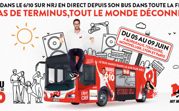 La matinale "Manu dans le 6/10" sur NRJ sera du 5 au 9 juin en direct d'un bus en mouvement durant les 4 heures d'émission. À Bordeaux, Toulouse, Montpellier, Lyon et Paris, Manu et les "ouins-ouins" se déplaceront avec leur bus 100% électrique MAN Truck & Bus France, à la rencontre de leurs auditeurs...