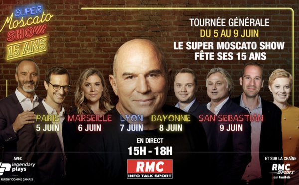 Du 5 au 9 juin, le "Super Moscato Show" s’invite chaque jour dans une ville à l’occasion de son quinzième anniversaire. À Paris, Marseille, Lyon, Bayonne, et San Sebastián, Vincent Moscato et son équipe donnernt la parole à des sportifs et des personnalités locales ainsi qu’au public présent et aux auditeurs, pour échanger et débattre sur l’actualité sportive.