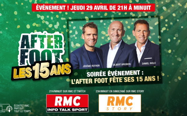 À l'occasion de ses 15 ans, l'émission "After Foot" sera sur tous les fronts ce jeudi soir dès 21h, avec une soirée sur RMC et la chaîne Twitch RMC mais également en simultané sur RMC Story. Pour célébrer cet anniversaire, RMC a décidé de rassembler tous les chroniqueurs et consultants qui ont fait le succès de l'émission, ainsi que des invités.