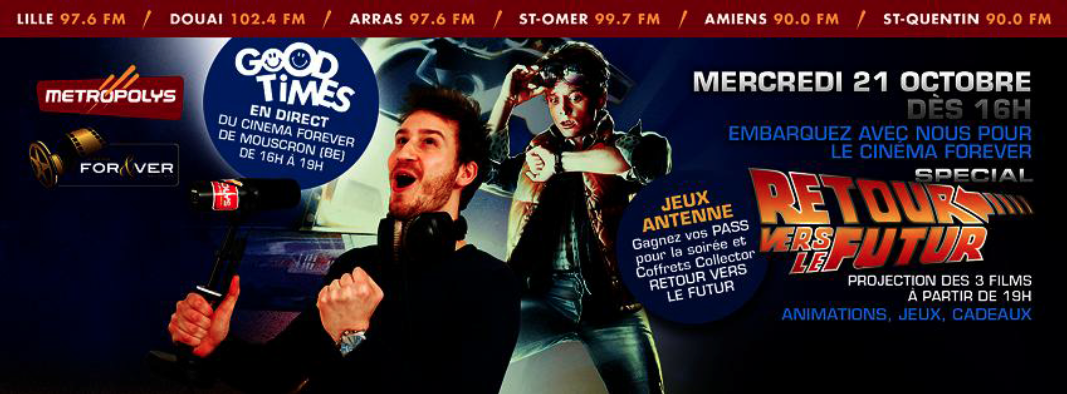 Pour célébrer, en famille ou entre amis, le retour tant attendu du Doc et de Marty Mc Fly, de nombreux cadeaux seront à gagner en écoutant Metropolys mais aussi sur place ce mercredi 21 octobre lors du direct proposé par l'équipe. Des Pass pour assister à la projection de la trilogie ainsi que des coffrets DVD Blu-Ray Edition Collector.