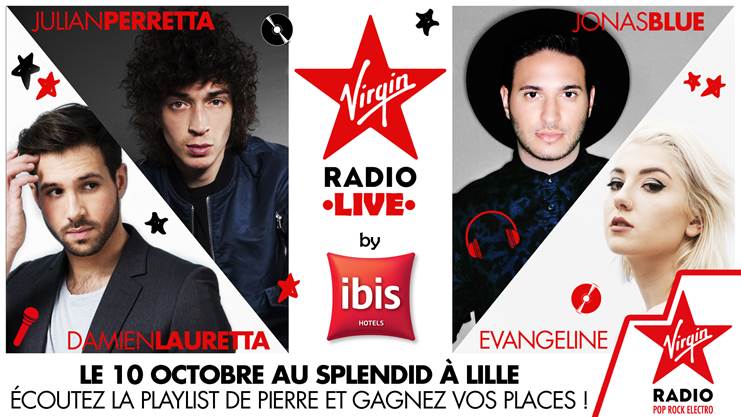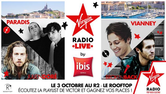 Enfin, la station organisera des concerts dénommés " Virgin Radio Live" avec Julien Doré, Vianney et Broken Back à Marseille (le 3 octobre), et avec Julian Perretta, Jonas Blue, Evangeline et Damien Lauretta à Lille (le 10 octobre). Deux autres devraient être proposés à Rennes (en novembre) et à Bordeaux (en décembre).