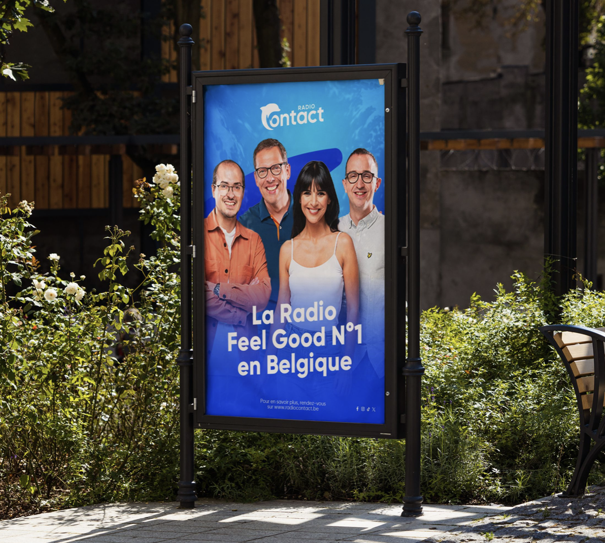 Ce sont aussi les liens étroits de l’agence avec RTL Belgium qui lui ont permis de relever ce nouveau challenge : redesigner le cultissime dauphin. Nonante Cinq et Radio Contact, c’est une histoire d’amour qui dure et qui a fait ses preuves. Et pour cause : Nathan Soret, le fondateur de l’agence, y a en effet officié pendant de nombreuses années au micro, aux côtés de David Antoine. Aujourd’hui encore, le jeune entrepreneur amoureux des médias présente l’émission Waldorado sur RTL tvi, au carrefour de ses deux passions (lire également ICI).