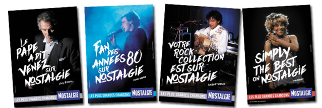 En détournant subtilement les titres phares des artistes sur chaque visuel, comme par exemple "Let’s Dance On Nostalgie" de David Bowie ou "Fan des années 80" de Michel Sardou, les artistes deviennent les porte-paroles des valeurs de la marque et invitent les auditeurs à écouter les plus grandes chansons de l‘antenne. L’évolution de l’identité visuelle de Nostalgie met la musique et ses artistes au cœur de sa nouvelle stratégie de communication.