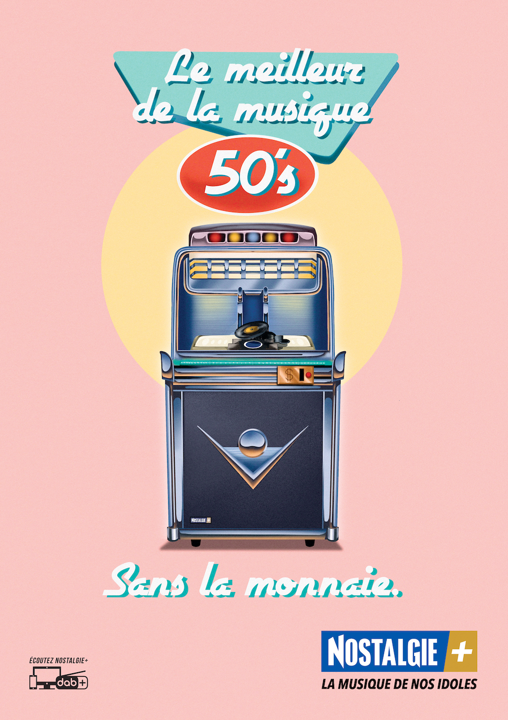 "Pour fêter les 2 ans de Nostalgie+, nous souhaitions créer une campagne dans un univers propre à nous, inspiré des codes et du graphisme des années 70, 60 et 50, tout en se différenciant des autres radios. Notre agence Silver and Copper a parfaitement saisi ce que nous recherchions, avec comme résultat un joli clin d’œil à nos manières d’écouter la musique au cours de ces dernières décennies" a expliqué Laure Di Francesco, directrice de la communication à NGroup. L'enjeu de la campagne ? Augmenter la notoriété de la marque tout en modernisant ce format musical unique. Voilà pourquoi, Silver & Copper et Nostalgie+ ont fait le choix de travailler avec l'artiste bruxellois Milan, issu du Street Art et du streetwear, pour réaliser les 3 illustrations de la campagne... une belle manière de moderniser le prise de parole de la marque.