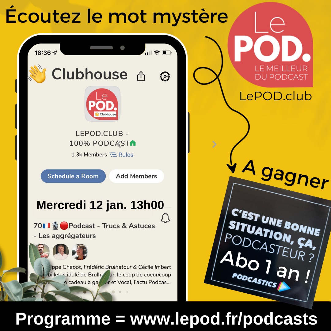 Pour y participer rien de plus simple. L'application ClubHouse est désormais disponible gratuitement et sans invitation sur l'Appstore et sur Android. Une fois téléchargée, il vous suffit de cliquer sur ce lien et de vous abonner au Club LePOD.club - 100% Podcast. De là, vous pourrez très facilement devenir membre du Club et cliquer sur les différentes rooms que nous planifions. En cliquant sur la petite cloche. Cela vous permettra de pouvoir être alerté des rooms.