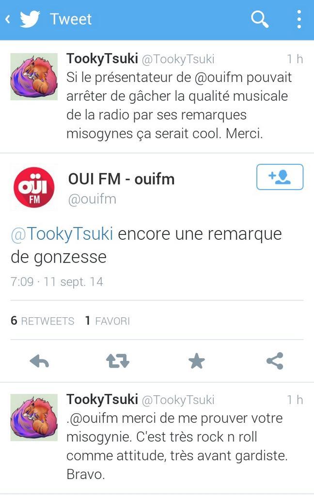 Mais ce matin, la radio s'est réveillée avec sa façade tapissée d'affiches "OÜI FM SEXISTE" reprenant le Tweet en question. Polémique inutile ?