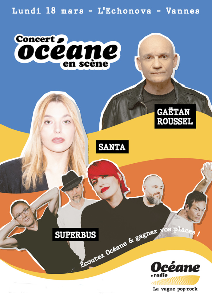 La radio Océane organise son premier concert en Bretagne et propose à ses auditeurs d'applaudir Santa, Superbus et Gaëtan Roussel, lundi 18 mars prochain à Vannes. Quelque 600 auditeurs privilégiés pourront assister à ce concert "Océane en scène" à L'Echonova à Vannes.Brulhatour est le rédacteur en chef du magazine La Lettre Pro de la Radio et le directeur associé... En savoir plus sur cet auteur