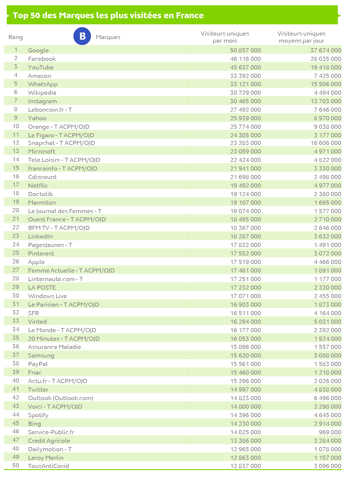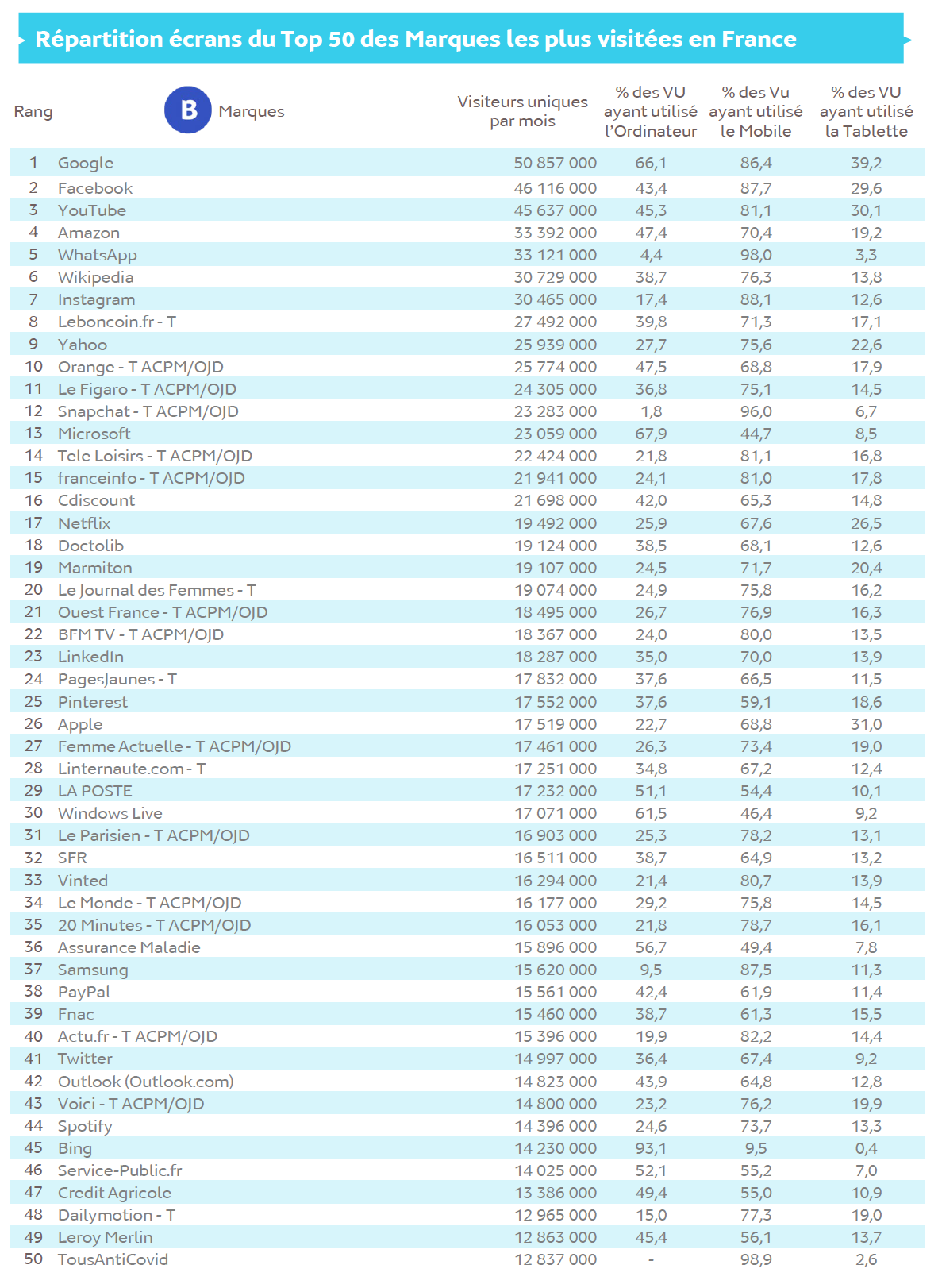 Source : Médiamétrie et Médiamétrie//NetRatings - Audience Internet Global - Tous lieux de connexion - France – Février 2021 - Base : 2 ans et plus Copyright Médiamétrie - Tous droits réservés