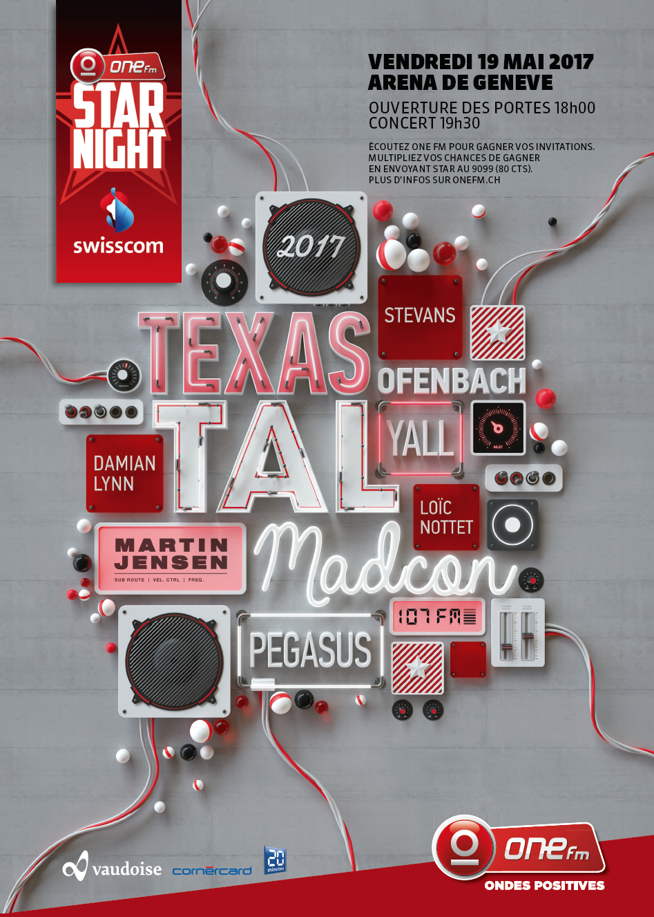 Comme chaque année, One FM Star Night fait aussi la part belle aux artistes suisses en accueillant le groupe éléctro-pop genevois Stevans, mais aussi Pegasus ou encore Damian Lynn, tous nommés ou récompensés à de multiples reprises aux Swiss Music Awards ces dernières années.