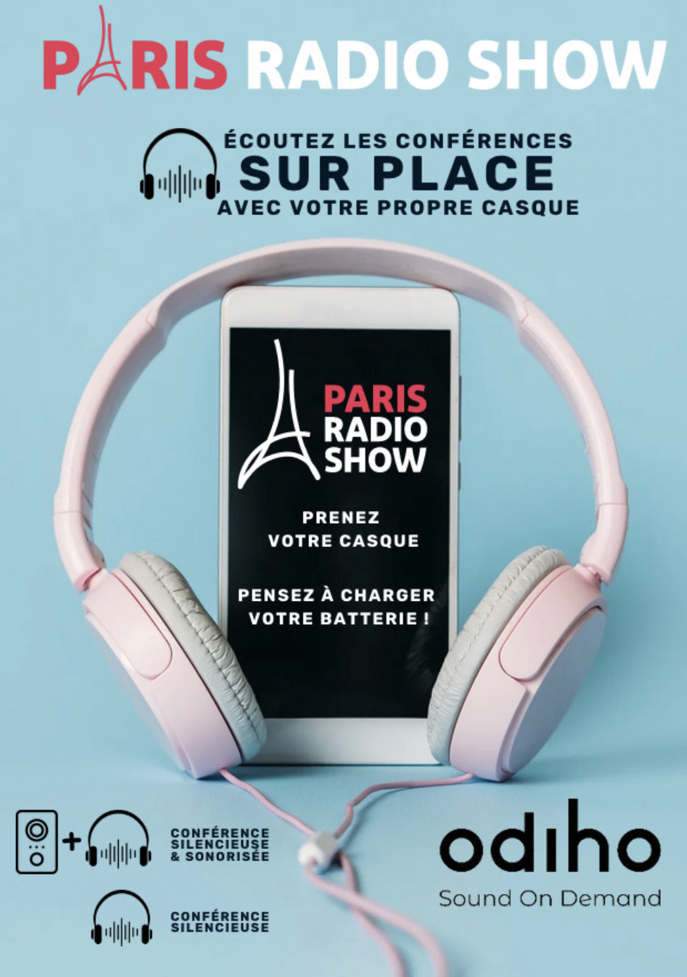 Cette année, grâce à un partenariat avec Odiho, les conférences seront écoutables depuis chaque salle, en direct, depuis votre téléphone portable sans latence. Pensez à prendre vos oreillettes, votre casque et votre batterie portable au cas où vous n'ayez pas suffisamment de batterie pour pouvoir écouter l'ensemble des sessions toutes aussi intéressantes les unes que les autres.