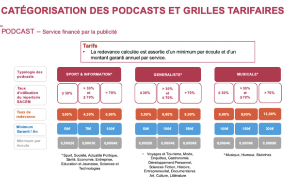 Après plus d’un an de négociations, le GESTE (qui regroupe les éditeurs de contenus et de services en ligne) et la SACEM sont arrivés à un accord commun sur une grille tarifaire s’appliquant aux droits d’auteurs sur les podcasts natifs.