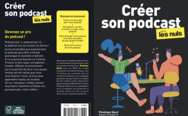Disponible depuis hier en librairie, l'ouvrage "Créer son podcast" (dans la célèbre série "Pour les nuls") aux Éditions First est signé Pénélope Bœuf. Elle est la fondatrice du studio La Toile sur Écoute et créatrice d’une dizaines de chaînes de podcasts comme "L’arnaque", "Journal d’une confinée" encore "Pique-Parole"...