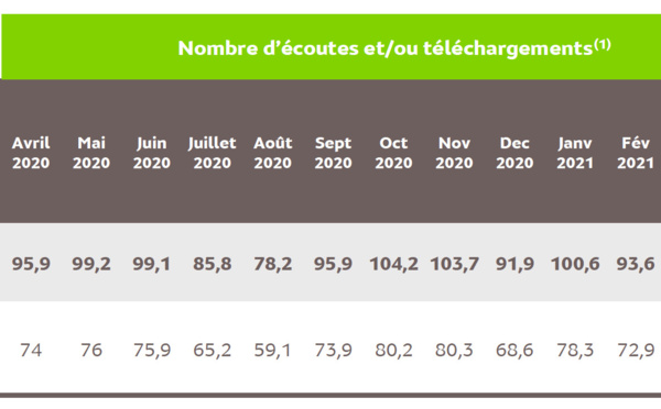 Le succès des podcasts se confirme selon la mesure eStat Podcast d'avril 2021 avec 112.6 millions d’écoutes et/ou téléchargements. Cette étude de Médiamétrie comptabilise l’ensemble des contenus audio écoutés directement en streaming ou téléchargés sur la majorité des supports d’écoute