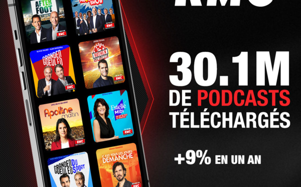 Deuxième radio privée de France avec 30.1 millions d’écoutes générées au mois de décembre (+9% en un an), RMC est la seule station à afficher 4 podcasts dans le Top 15 France : "L’After Foot" (premier replay de France pour le 3e mois consécutif avec 18.7 millions de téléchargements en décembre), "Le Super Moscato Show" (11e), "Les Grandes Gueules" (12e) et "Rothen s'enflamme" (14e).