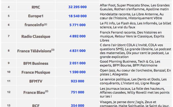L'audience des replays des radios en octobre