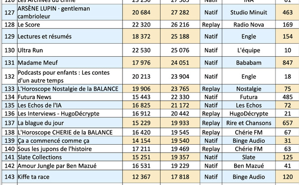 L’Alliance pour les Chiffres de la Presse et des Médias publie les classements podcasts certifiés du mois de mai 2025. Plusieurs marques issues de la radio s’illustrent. Radio Nova, NRJ, Rire et Chansons et Chérie FM figurent parmi les marques les plus téléchargées, consolidant la place du replay radio dans l’univers podcast.