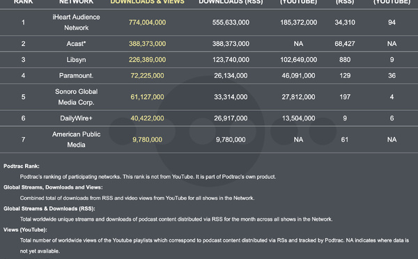 Selon les dernières données Podtrac pour le mois de mai 2025, iHeartMedia conserve la première place du marché américain des podcasts avec plus de 72 millions d’auditeurs uniques mensuels et plus de 360 millions de téléchargements et de streams, confirmant son leadership sur le secteur.