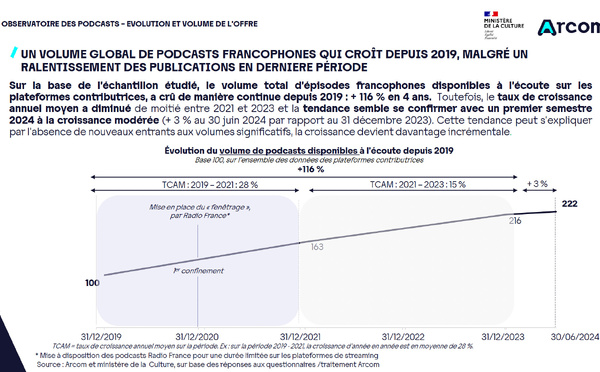 L’Observatoire des podcasts, coordonné par l’Arcom et la DGMIC, publie une nouvelle étude détaillant le volume et les caractéristiques de l’offre francophone. Présentée le 2 juillet 2025, cette analyse apporte un éclairage précis sur la place croissante qu’occupe l’audio à la demande dans le paysage radiophonique et numérique.
