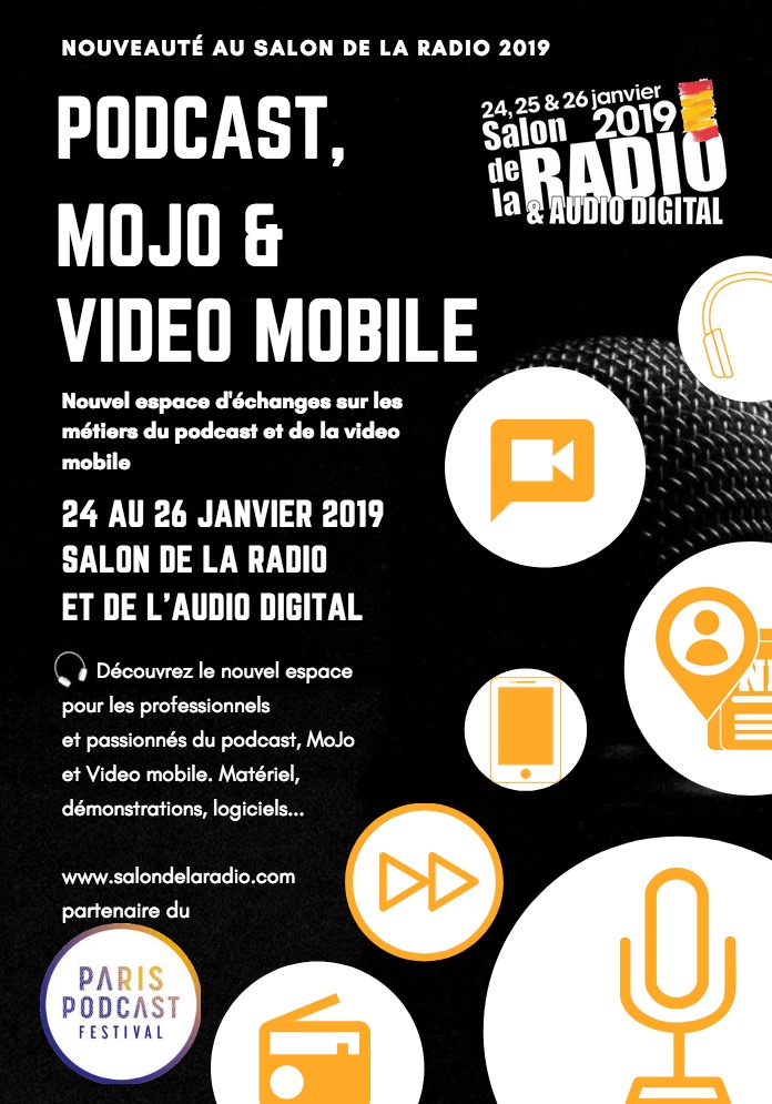 Mais quelles sont les applications utilisées par les rédactions aujourd’hui ? Quels sont les micros, les trépieds, les stabilisateurs, les lumières LED et surtout avec quel workflow ? La réponse à ces questions, vous les aurez dans un nouvel espace que le Salon de la Radio propose pour la première fois en 2019 : l’espace Podcast, MoJo et Vidéo Mobile.