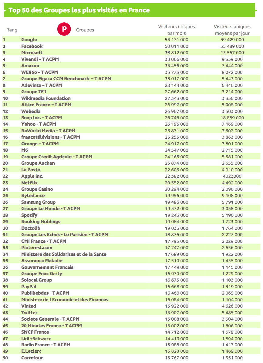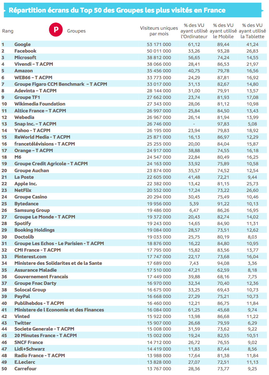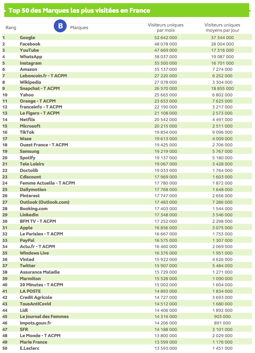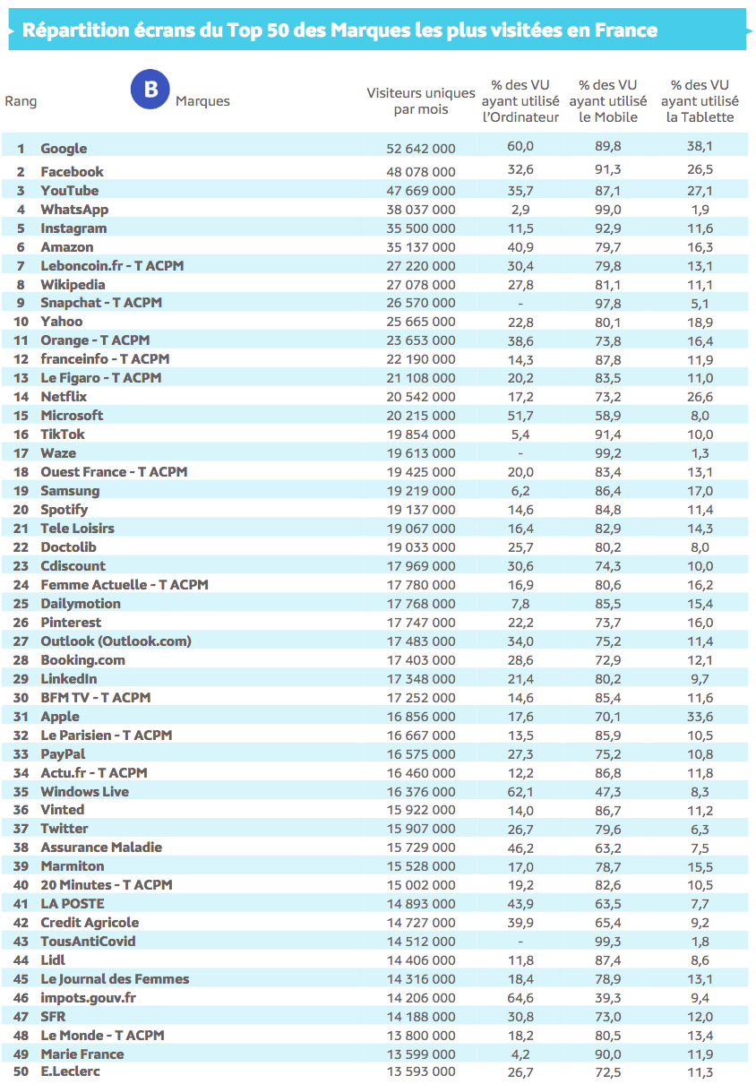 Source : Médiamétrie et Médiamétrie//NetRatings - Audience Internet Global - Tous lieux de connexion - France –août 2022- Base : 2 ans et plus - Copyright Médiamétrie - Tous droits réservés