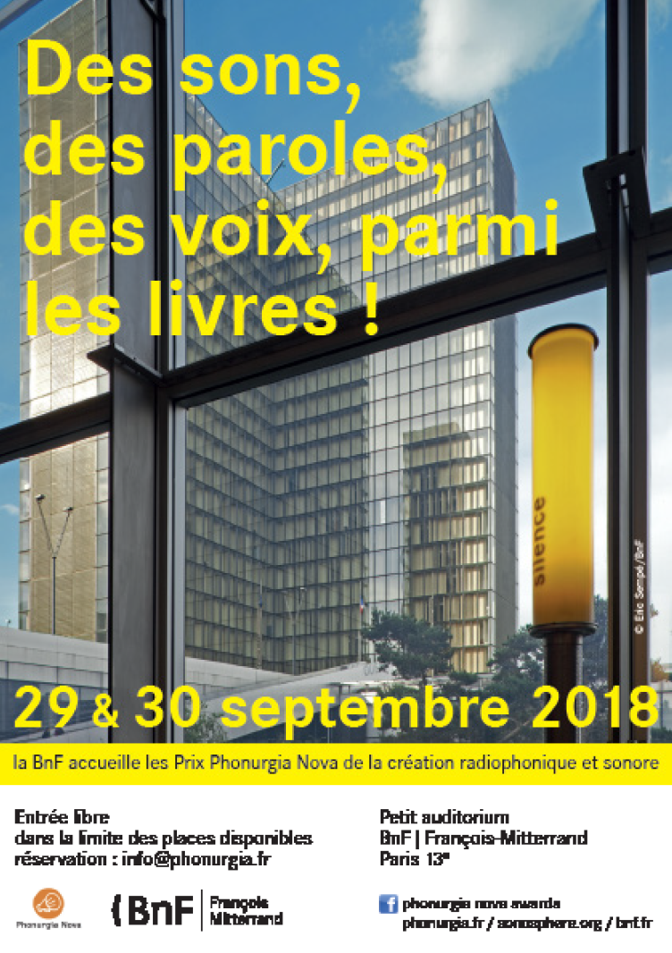 Chaque année, Les Prix Phonurgia Nova 2018 de la création radiophonique et sonore sont l’occasion d’entendre une sélection des meilleures fictions, des plus récents documentaires et des créations "pur son" les plus novatrices, à l’échelle internationale. La BnF accueille ce festival de l’écoute et le dote également d’un prix spécial "Archives de la parole", qui fait écho à ses propres collections historiques.