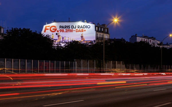 Radio FG est désormais visible sur le boulevard périphérique de Paris, avec une publicité lumineuse située en haut d'un immeuble Porte de la Chapelle, rappelant le slogan "DJ Radio" ainsi que la diffusion en FM et en DAB+.