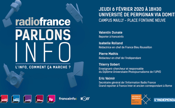 "Parlons INFO", ce sont des rencontres entre les journalistes du groupe et les publics en région. Des échanges autour de l’information, sa hiérarchisation, la définition de ses lignes éditoriales. Il s’agit de rencontres entre les journalistes des rédactions de Radio France et les publics en régions.