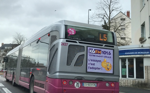 "K6FM 101.6 votre radio locale. L'essayer, c'est l'adopter !". Voilà pour le message affiché sur les arrières des bus qui circulent à Dijon. K6FM communique pendant 15 jours avec ce format publicitaire dit "cul-de-bus" à et autour de Dijon. C'est une première pour la station dirigée par Franck Pelloux.
