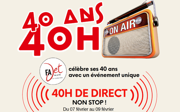 Pour marquer ses 40 ans d’existence, Radio Fajet (Nancy) organise un événement inédit : 40 heures de direct non-stop, du vendredi 7 février à 20h au dimanche 9 février à 12h. Un défi ambitieux qui réunira animateurs, bénévoles, partenaires et auditeurs autour d’émissions spéciales, de débats, de musique en live et de nombreuses surprises.