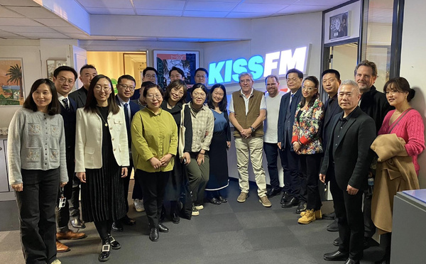 Ce lundi 18 novembre, Kiss FM recevait une délégation chinoise (des professionnels et professeurs de Beijing Film Academy) dans ses locaux à l’initiative de la communauté des Chinois de la Côte d’Azur. Ils ont profité de leur voyage en France pour faire un crochet par les studios de la station azuréenne.