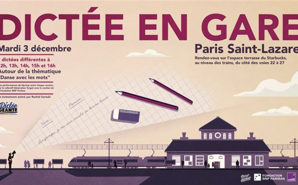 Avant Poitiers (le 22 janvier), Rennes (5 février) et Lille (le 26 mars), France Culture et SNCF Gares & Connexions organisent une nouvelle "Dictée en gare" : cinq dictées géantes le mercredi 3 décembre, en gare de Paris Saint-Lazare à 12h, 13h, 14h, 15h et 16h...