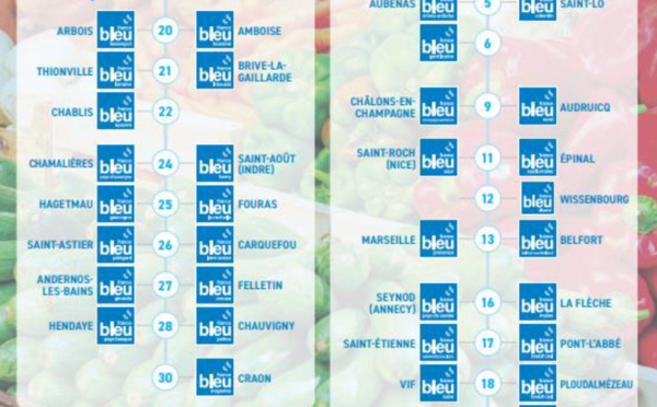 Une radio locale, un marché, un chef cuisinier, un panier de produits... Voici la recette des émissions de France Bleu qui auront lieu chaque jour, pendant un mois, à travers toute la France, du 20 septembre au 20 octobre 2024, tous les jours, de 9h à 11h...