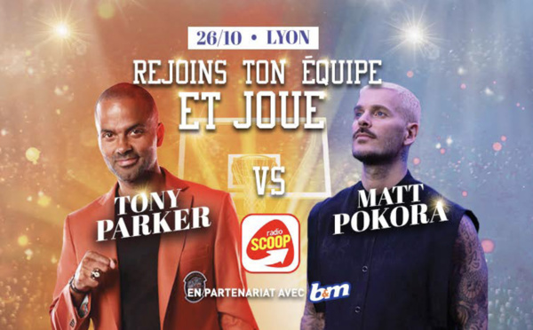 Ce jeudi 26 octobre, Radio Scoop organise pour ses auditeurs, un match de gala entre la star internationale de basket Tony Parker et l’artiste que l’on ne présente plus Matt Pokora. Un match à suivre à 15h30 au gymnase Mado Bonnet, salle emblématique du LDLC Asvel féminin, partenaire de la radio de Lyon.