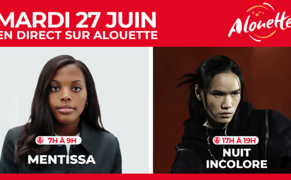 Alouette multiplie les opérations à un rythme soutenu. La semaine prochaine,mardi 27 juin, la radio mettra à l’honneur deux artistes de la nouvelle scène française en interview dans ses studios : Mentissa et Nuit Indolore.