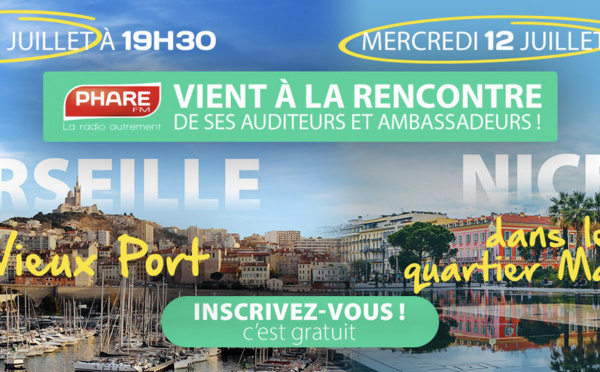 Présentations, spécificités locales, temps d’échange, verre de l’amitié… Cet été, l'équipe de Phare FM sort de ses studios et part à la rencontre de ses auditeurs. L'équipe sera à Marseille le 11 juillet et à Nice le lendemain...