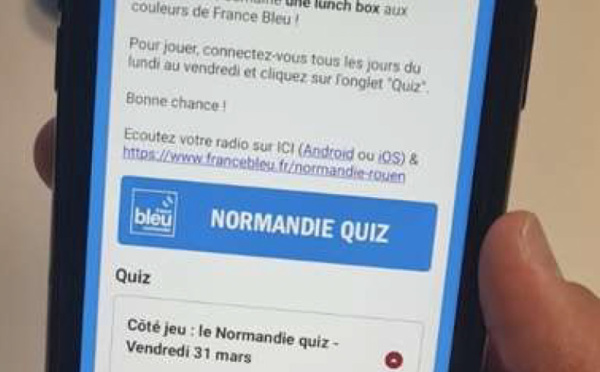 Depuis ce lundi, le "Normandie Quiz" se décline sur les smartphones des auditeurs. Du lundi au vendredi, les auditeurs de France Bleu Normandie jouent de 11h à 12h en appelant France Bleu Normandie. A présent, ils peuvent jouer à toute heure, du lundi au vendredi sur leur smartphone grâce à cette version numérique. Un vrai projet innovant et de proximité pour conquérir de nouveaux auditeurs et fidéliser les autres.