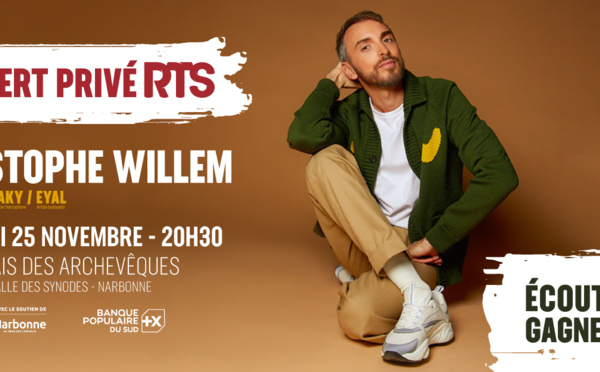 Vendredi 25 novembre, RTS organise un concert privé avec Christophe Willem. Ce concert aura lieu dès 20h30 dans la salle des Synodes du Palais des Archevêques de Narbonne, un lieu insolite, figé dans le temps... L'événement sera proposé avec le soutien de la Banque Populaire du Sud et de la mairie de Narbonne.