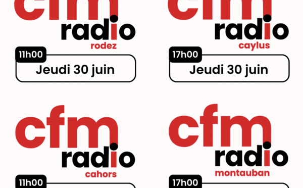 Les 30 juin et 1er juillet, la radio CFM inaugurera 4 nouveaux studios à Rodez, à Caylus, à Cahors ainsi qu'en Montauban. Pour clôturer ses deux jours d'inauguration et de découvertes, CFM fêtera ses 41 ans de radio à Montauban.