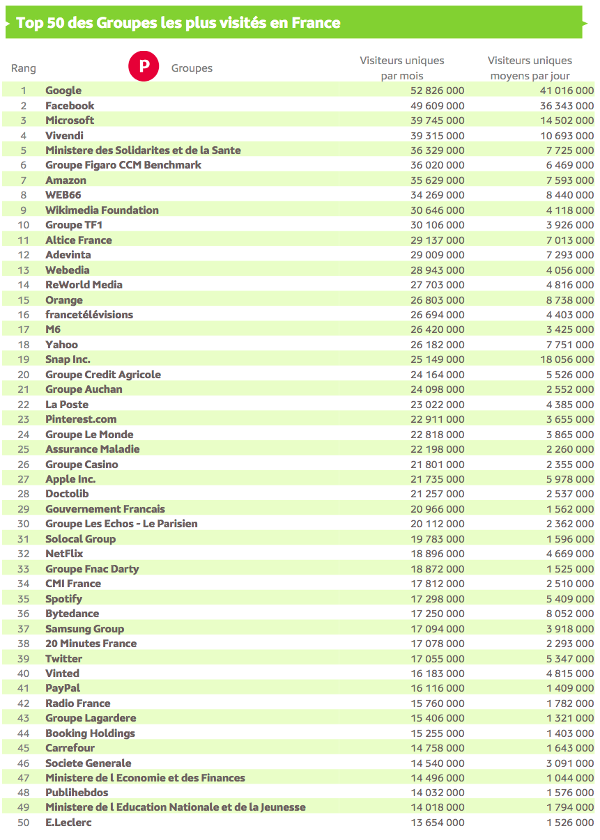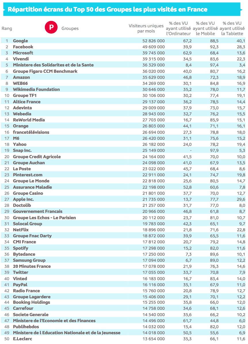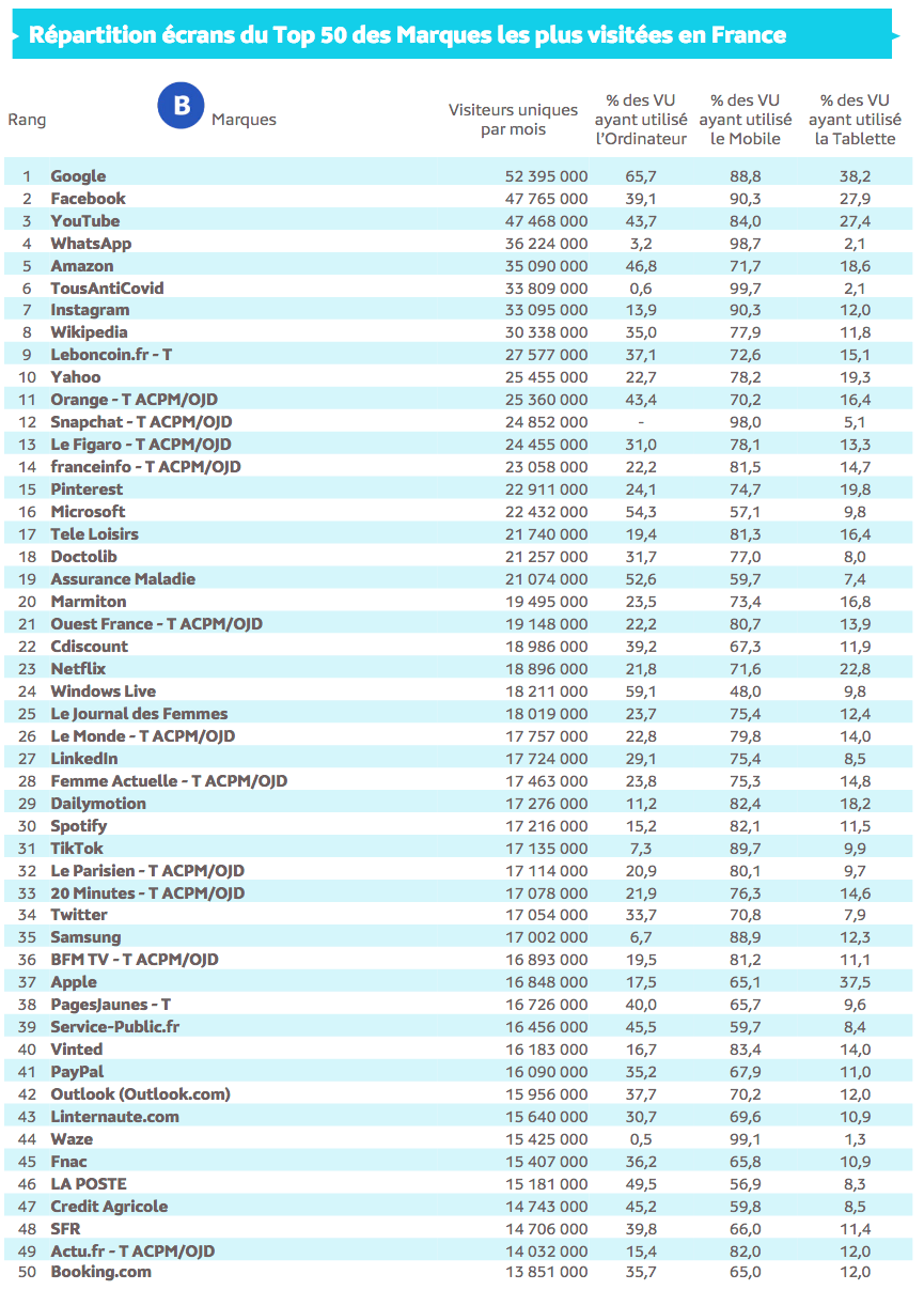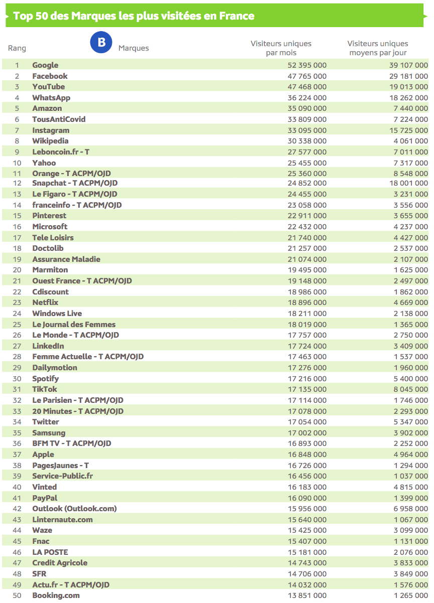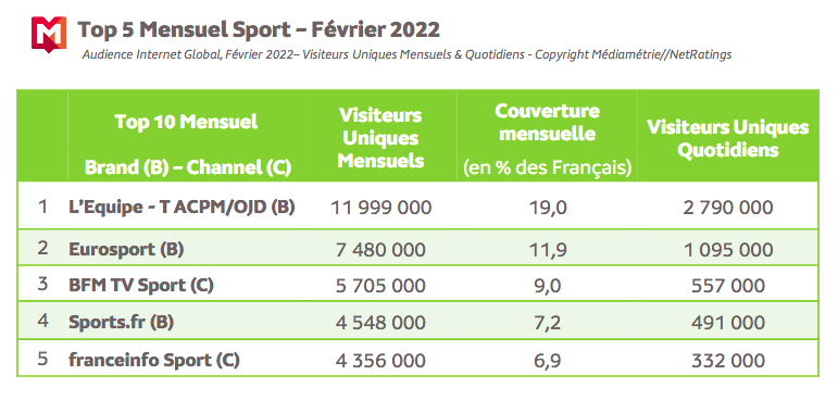 Source : Médiamétrie et Médiamétrie//NetRatings - Audience Internet Global - Tous lieux de connexion - France – février 2022 - Base : 2 ans et plus Copyright Médiamétrie - Tous droits réservés