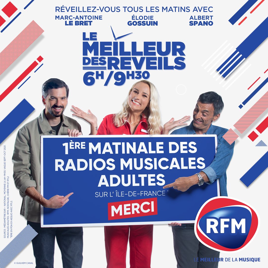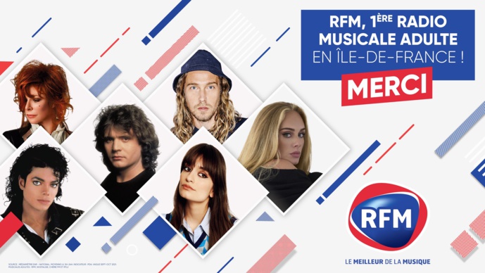 "Grâce à une musique qui rassemble et à la très forte fidélité de ses auditeurs, RFM est leader des radios musicales entre 9h30 et 16h sur Paris avec une part d’audience de 3,8%. RFM est aujourd’hui la radio musicale adulte que les Franciliens écoutent le plus longtemps : 1h38min".