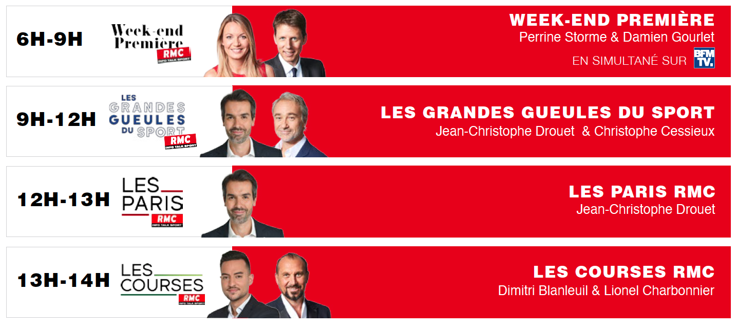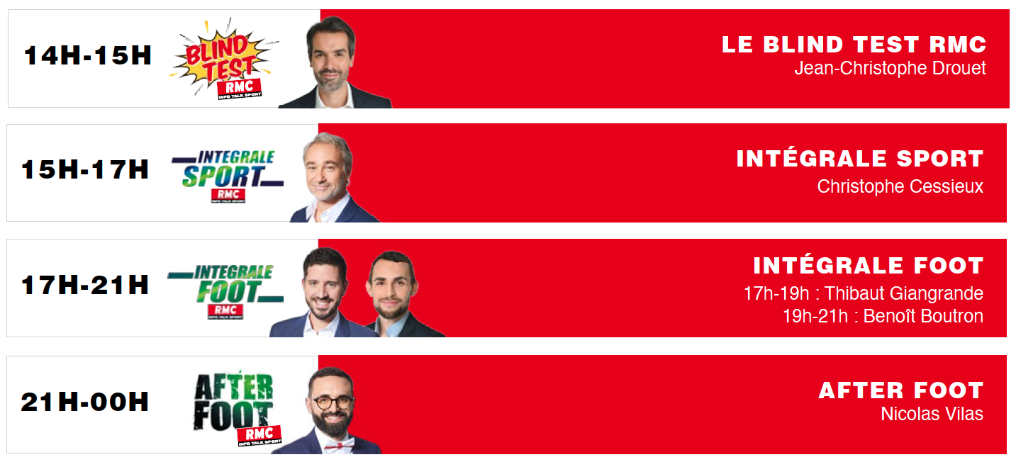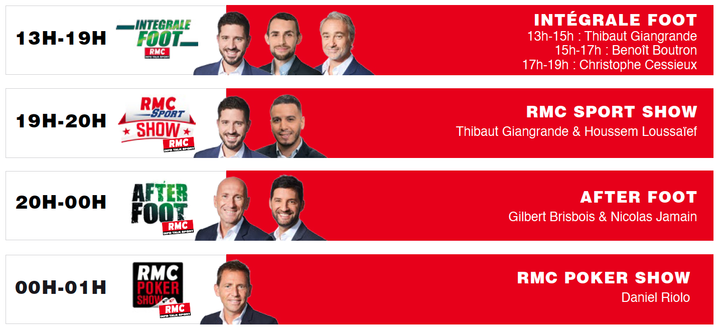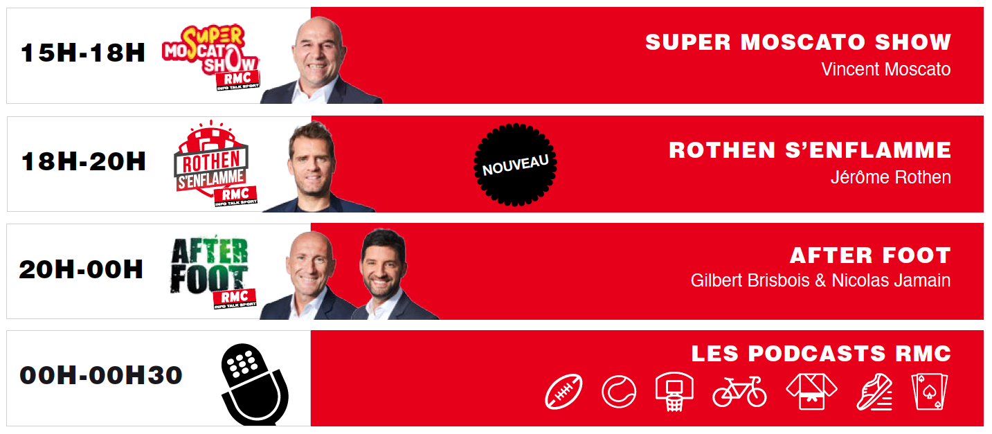 "Comme chaque saison, le week-end, RMC conserve ses priorités qui ont contribué à son succès avec du direct consacré à tous les sports et à tous les grands événements sportifs. RMC, c’est 75 heures hebdomadaires de sport qui sont programmées en direct à la radio chaque semaine" indique, par ailleurs, Karim Nedjari.