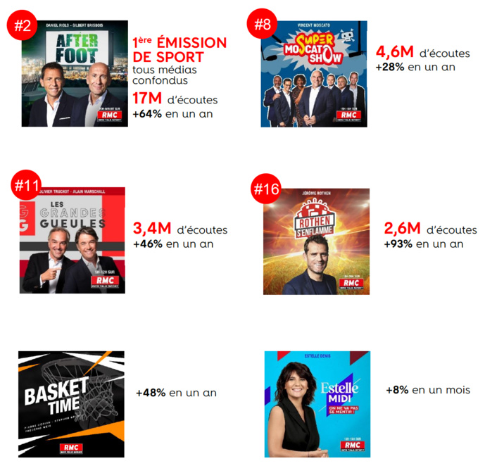 RMC affiche son deuxième record mensuel en podcasts téléchargés en enregistrant 30.5 millions d’écoutes en avril. Avec une hausse de 53% en un an, RMC confirme sa place de deuxième radio privée de France en podcasts et positionne 4 de ses émissions dans le Top 20.
