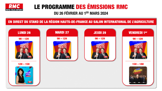 À l’occasion de la 60e édition du Salon International de l’agriculture, RMC délocalisera son antenne du lundi 26 février au vendredi 1er mars en direct du stand de la Région Hauts-de-France. De nombreuses émissions y seront réalisées pour RMC et RMC Story.Brulhatour est le rédacteur en chef du magazine La Lettre Pro de la Radio et le directeur associé... En savoir plus sur cet auteur