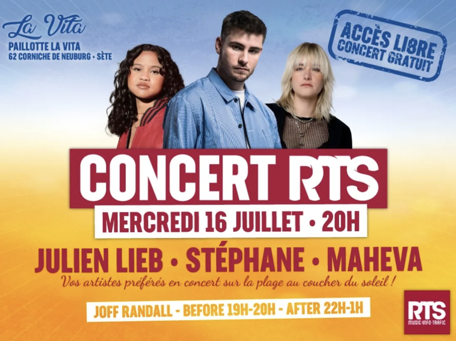 Après plusieurs opérations terrain ces derniers mois, RTS renouvelle son dispositif estival avec un concert en plein air. La station investira la paillote La Vita à Sète ce 16 juillet à 20h pour une soirée en format live. L’événement est totalement gratuit et sans invitation préalable. Il s’adresse au grand public, dans une logique d’ouverture et de visibilité locale.