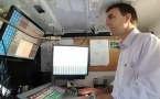 Sylvie Perchot aux commandes de WinMedia dans le studio mobile de Radio Espérance.