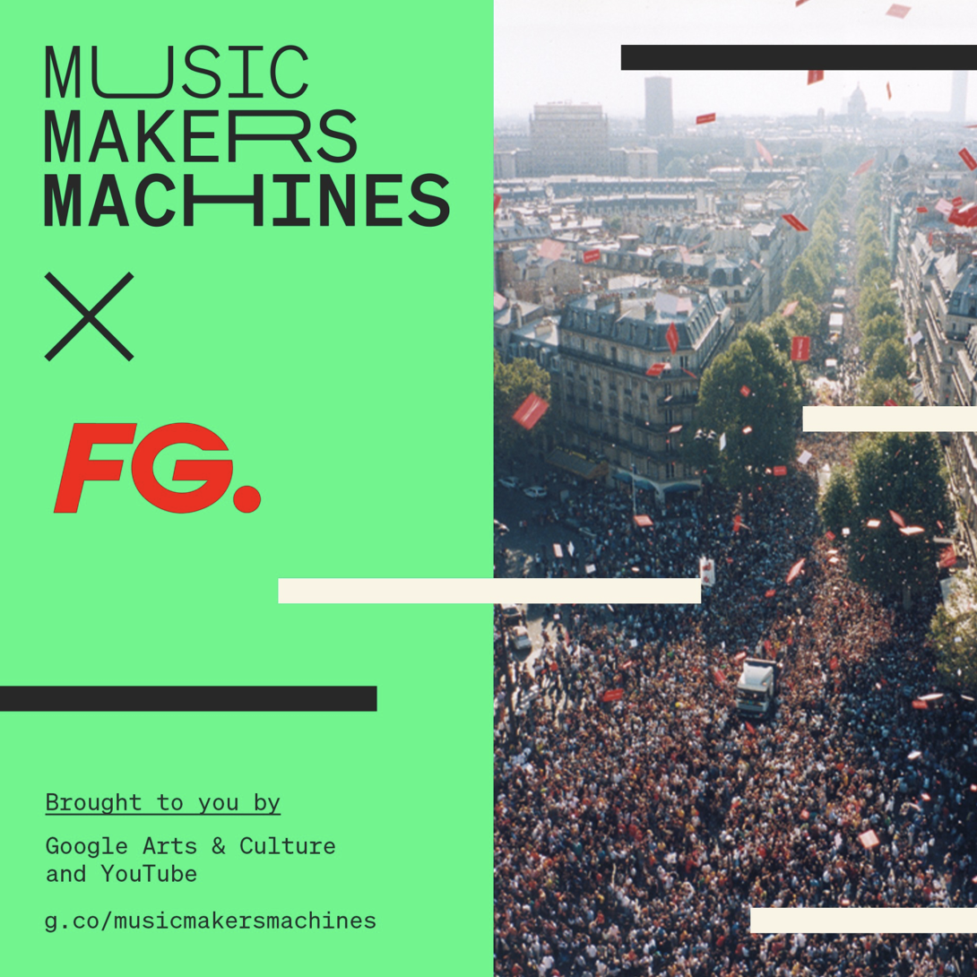 La collection proposée par FG a pour thème "Utopie French Touch - Radio FG 1991... " et se décline autour de 6 histoires : les 40 ans de Radio FG, les 30 ans de Techno House sur FG, les 20 ans des Compilations Dancefloor FG, les 10 ans de la disparition de Henri Maurel, fondateur de Radio FG, les 1 an sans clubbing, pour lequel cette exposition "Music, Makers & Machine" apparait comme une nécessité. Rappelons que, pendant la crise sanitaire, alors que les clubs sont fermés, Radio FG offre une scène mondiale unique à toute la scène de la musique électronique avec ses 12 programmes numériques.