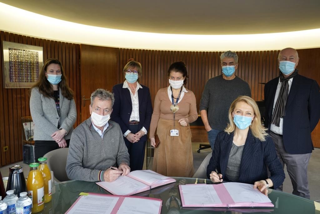 Signature de l’accord en présence de Sibyle Veil, Présidente-directrice générale de Radio France et Emmanuel de Buretel, Président de la SPPF @ Christophe Abramowitz - Radio France