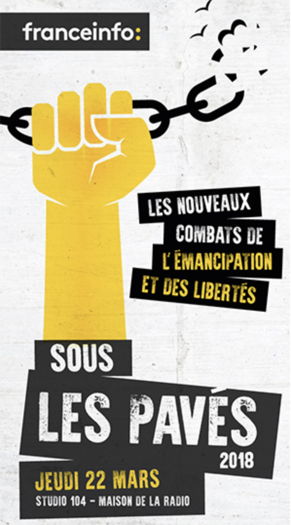 Jeudi 22 mars à 19h, au Studio 104 de la Maison de la radio, franceinfo proposera une soirée "Sous les pavés 2018" qui reviendra sur les 50 ans après Mai 68, sur les nouveaux combats de l’émancipation et des libertés. Lanceurs d’alertes, émancipation, nouvelles solidarités, libertés individuelles, discriminations… De nombreux témoignages présentés par Mathilde Munos, ponctueront deux tables rondes animées par Olivier de Lagarde. En conclusion, Vincent Giret, directeur de franceinfo, Hervé Brusini, directeur en charge du numérique, de la stratégie et de la diversité à France Télévisions et Matthieu Aron, directeur adjoint de la rédaction de l’OBS débattront de la liberté de la presse aujourd’hui.