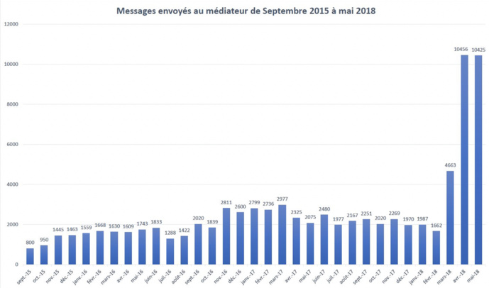 "Les auditeurs sont notre raison d’être et les écouter ne peut que permettre de nous améliorer en qualité, en fidélisation et en satisfaction en répondant mieux à leurs attentes" rappelle Bruno Denaes avant de quitter Radio France (il fait valoir ses droits à la retraite). "À ma nomination, nous recevions 800 messages par mois. Nous avons rapidement doublé le chiffre, pour atteindre entre 2 800 et 3 000 messages mensuels pendant l’année électorale (novembre 2016-juin 2017). Enfin, depuis avril 2018, nous traitons plus de 10 400 messages par mois". Désormais, les services Relations auditeurs de France Culture et franceinfo ont disparu ; ce sera le cas pour France Inter à la rentrée 2018. On comprendra qu'il est impossible de gérer plus de 10 000 messages chaque mois avec seulement deux personnes. À la prochaine rentrée, un troisième poste devrait être affecté à l’équipe du médiateur.